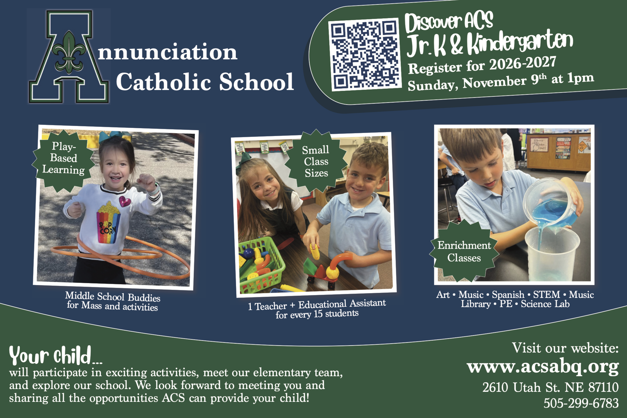 Join us on Sunday, November 9th, at 1 PM to Discover ACS Jr.K and Kindergarten! Explore our faith-based programs for the 2026-2027 school year. With a robust curriculum, enriching classes, hands-on STEM, and a focus on social-emotional growth, we nurture young minds and hearts. Meet our dedicated staff and discover what makes ACS the perfect place for your child to thrive!